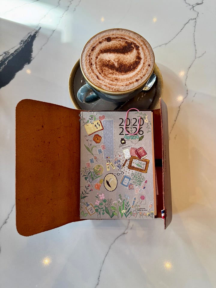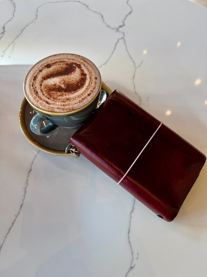 The patina on this leather has changed so much with use but that’s what makes it so special. It’s one of two journals I have adorned with a charm. I don’t know what it is about charms - I sort of love and hate them. I don’t want anything to get in the way of writing on a flat surface and I don’t want anything to scratch the leather unnecessarily, but I love the aesthetic, so I am trialing this one out!